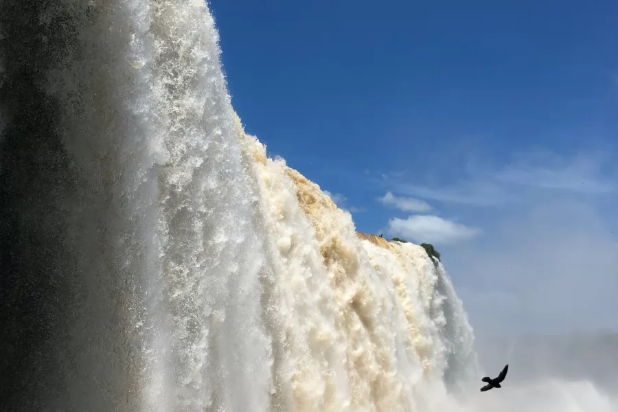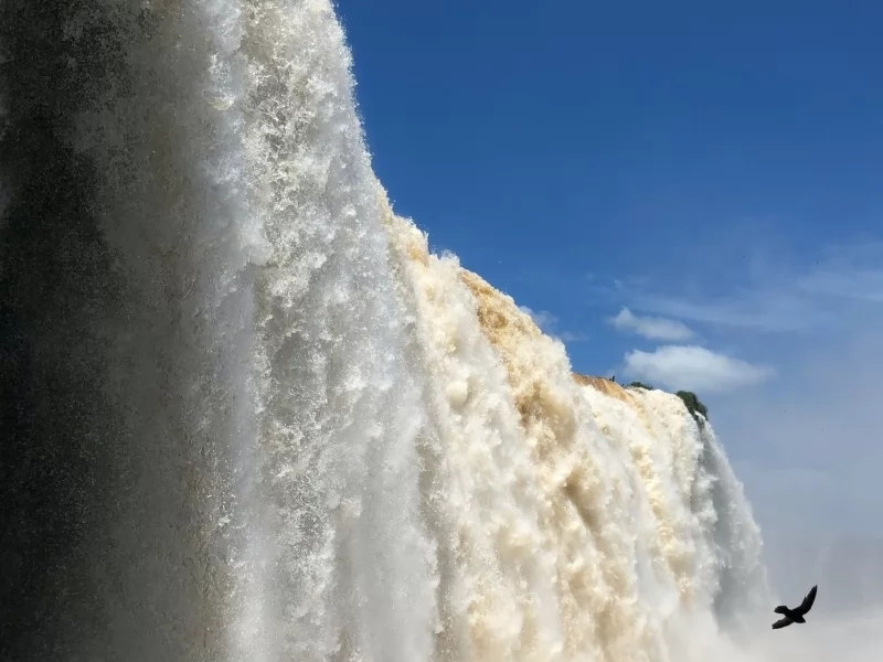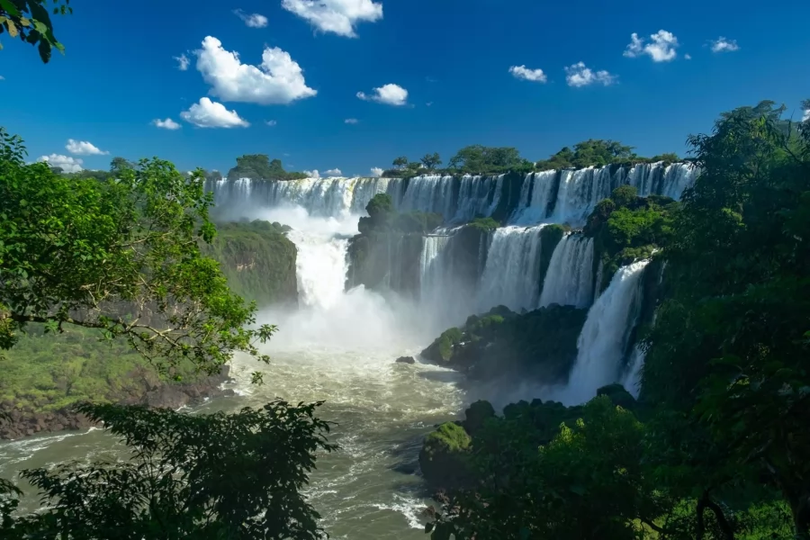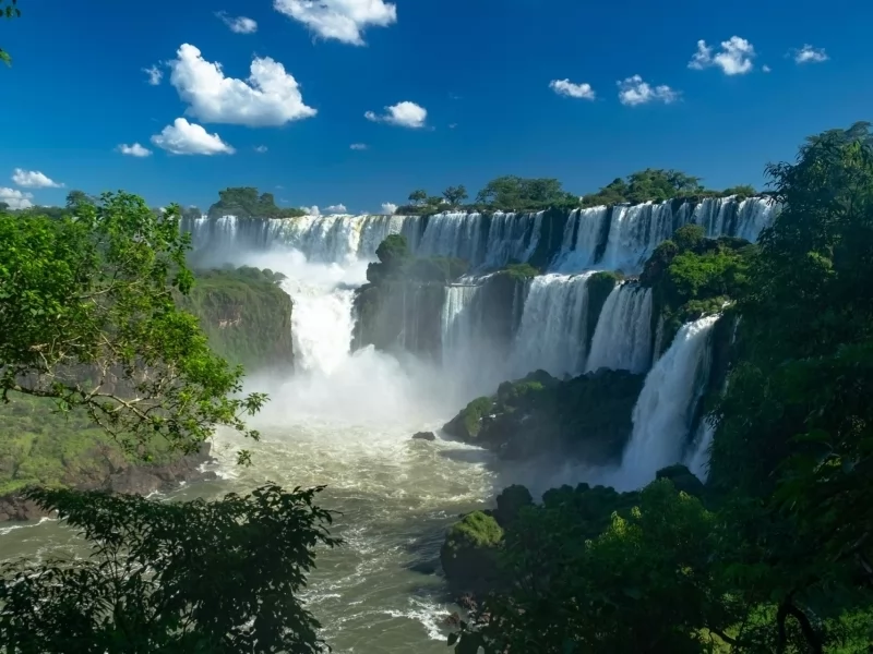 The Iguazu River -which means large water in Guaraní- flows into the Parana River creating a water blanket 1,500 meters wide, dotting islands and islets until it reaches a lava ravine formed 120 million years ago.