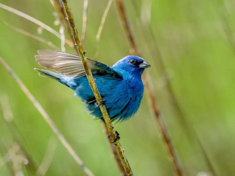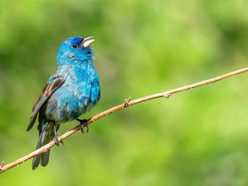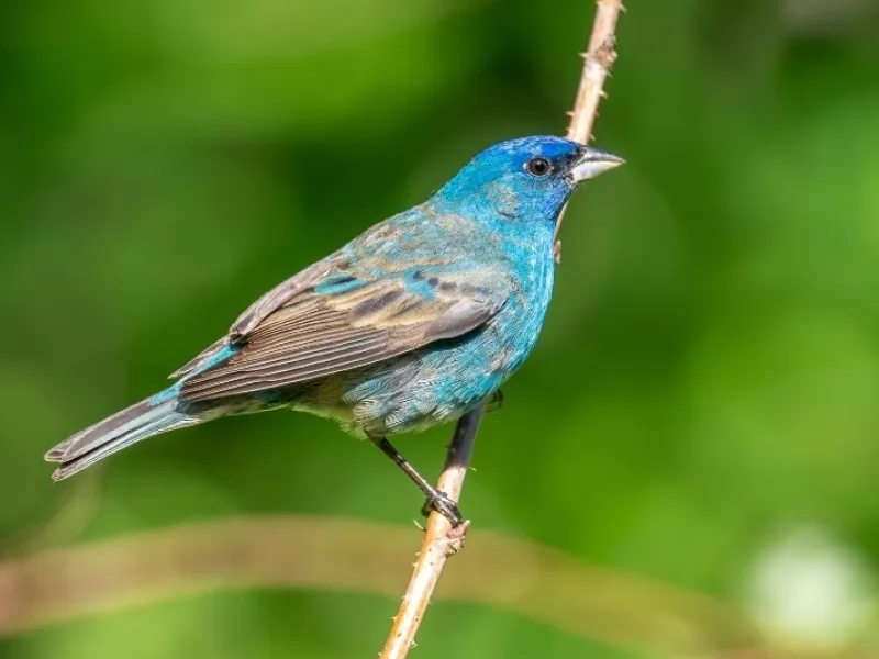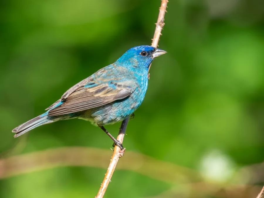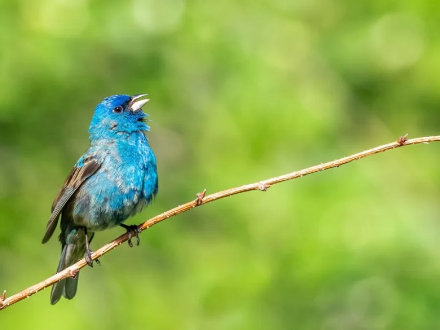 This time of year, from late spring to summer, male adult indigo buntings transform into a brilliant deep blue.